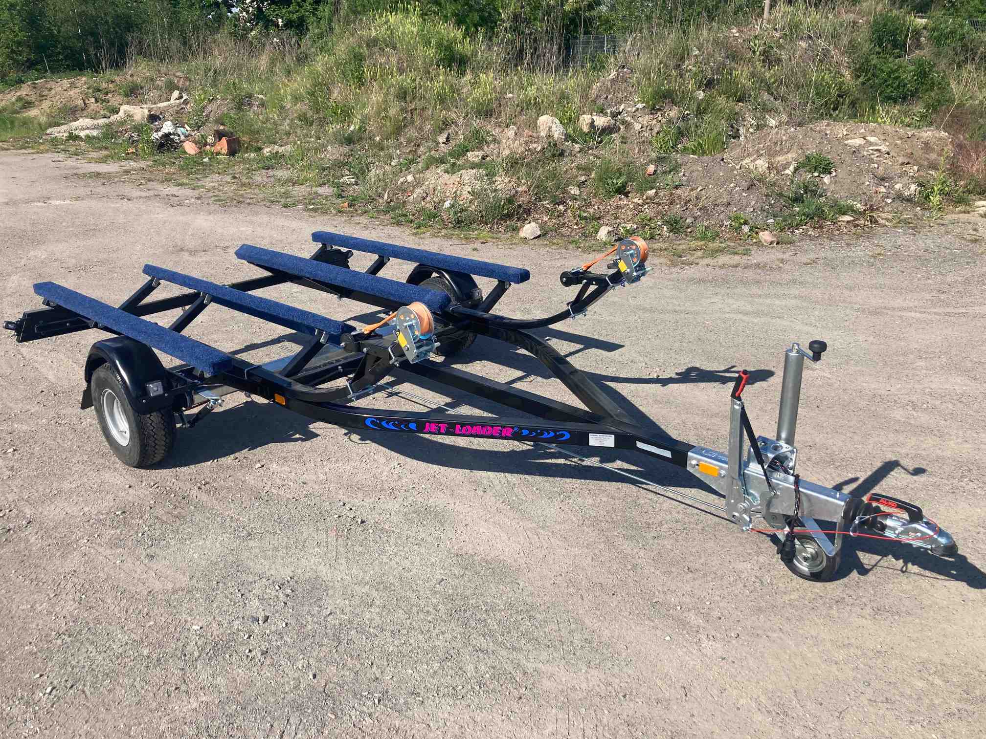 Der Jet-Loader Doppel-Jet-Trailer ist die ideale Lösung für alle, die zwei Jetskis sicher und komfortabel transportieren möchten. Dank robuster Bauweise und hochwertiger Verarbeitung bietet er maximale Sicherheit und ein souveränes Fahrgefühl – auf kurzen wie auf langen Strecken.